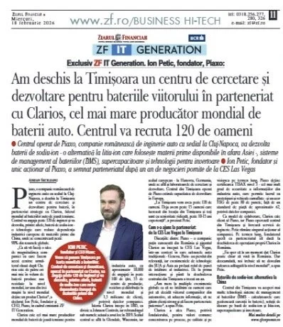 Piaxo has launched a Timișoara R&D center in a strategic partnership with Clarios, with plans to recruit 120+ engineers. The scope spans software, hardware, systems, testing, quality, and project management, and a laboratory.